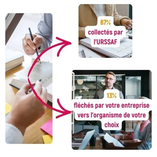 • 13 %, appelés “solde”, peuvent être fléchés par votre entreprise vers l’organisme éligible de votre choix.