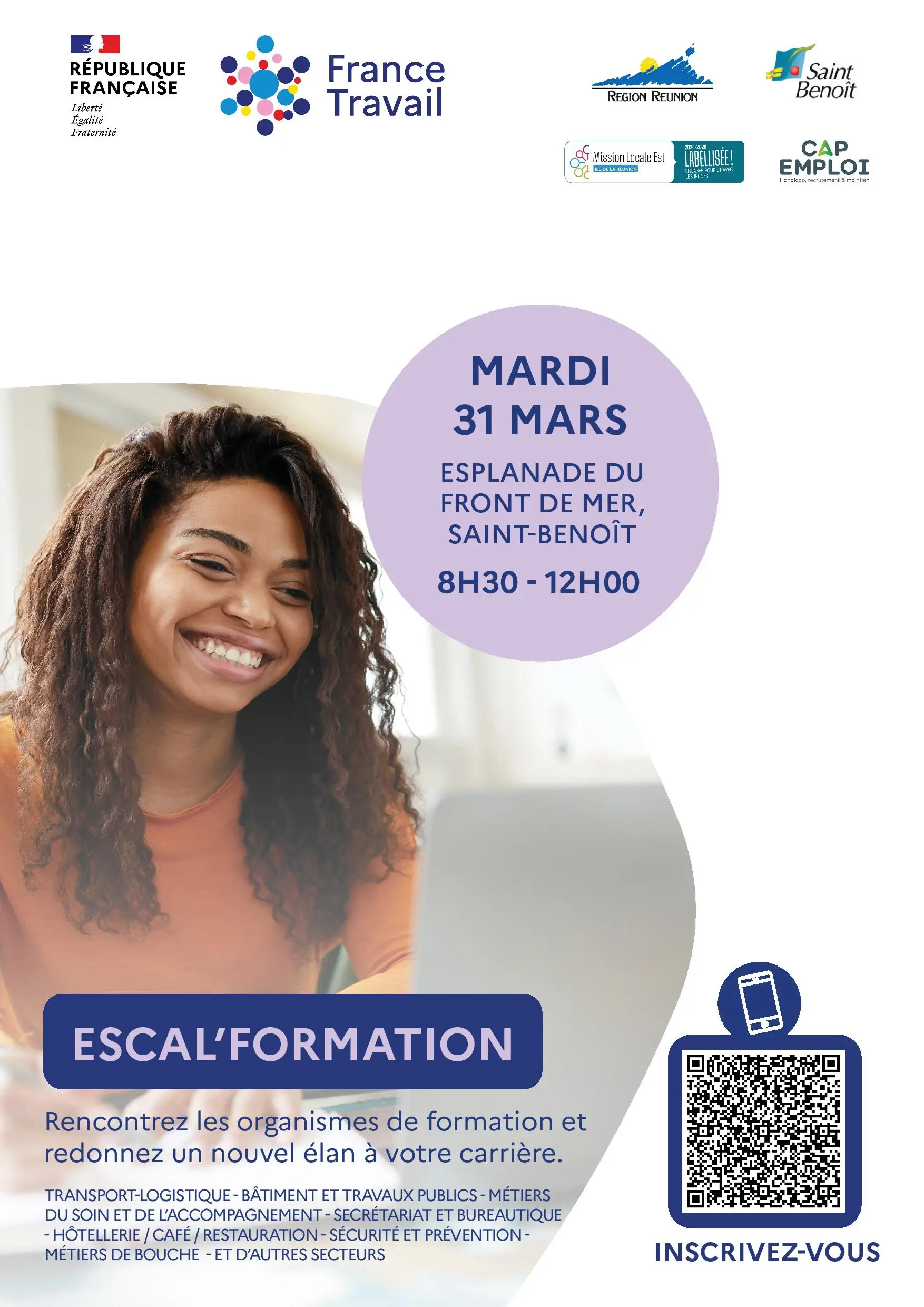 Une nouvelle édition du forum ESCAL’FORMATION se tiendra le mardi 31 mars 2026, de 8h30 à 12h00, sur l’esplanade du front de mer de Saint-Benoît.